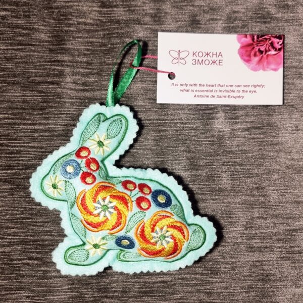 Вишивка на фетр, за мотивами наддніпрянських орнаментів. Підвіска – атласна стрічка довжиною 5-6 см. Набір містить 5 різдвяних прикрас: Коник 11х12 см; Зайчик 12х13 см;…